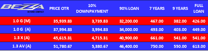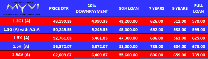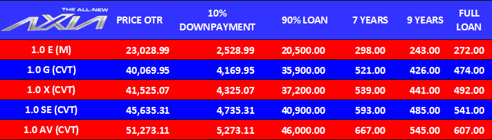Menawarkan empat varian untuk model Axia baru kali ini iaitu G, X, SE dan AV.